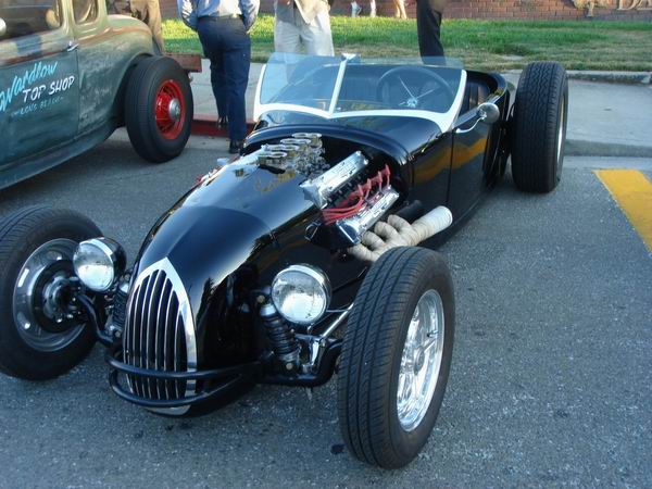 1947 caddy fenders, an MGB cockpit and interior all on a Camero chassis. |