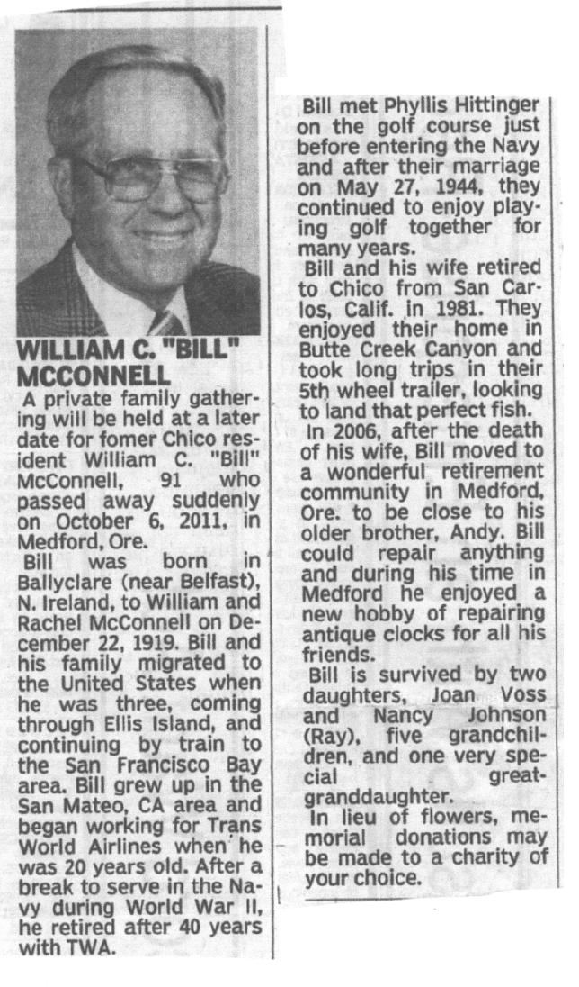 October 6, 2011. Bill retired from TWA in 1981and moved to