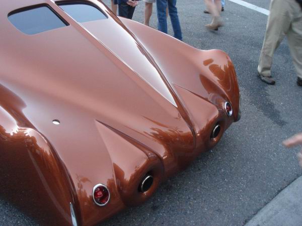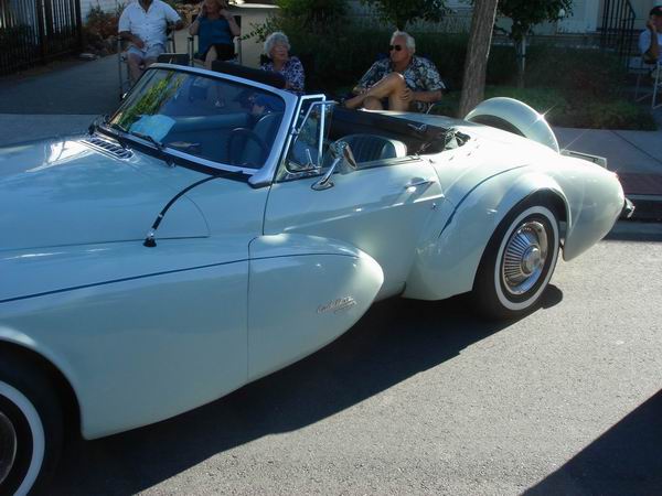 1947 caddy fenders, an MGB cockpit and interior all on a Camero chassis. |