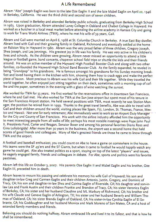 TWA Events | TWA Obituaries Ade Joseph Eaglin twa