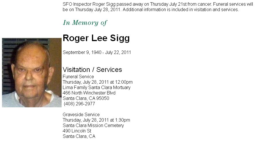 TWA Events | TWA Obituaries Roger Lee Sigg twa