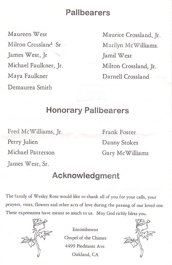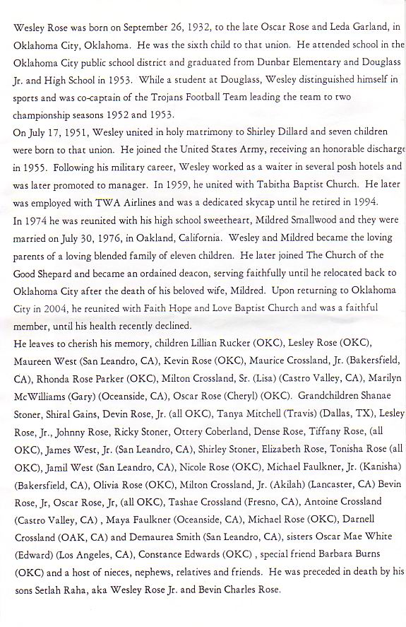 TWA Events | TWA Obituaries Westley Rose twa